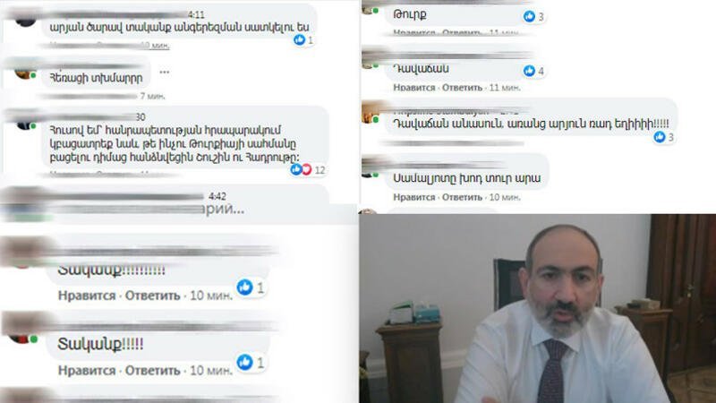 Xeberleragentliyi.com xəbər verir ki, erməni istifadəçilər şərh bölməsində Paşinyanı təhqir edib.