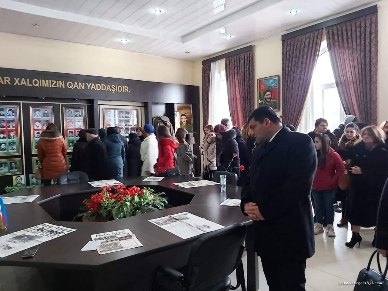 Əvvəlcə Şəhidlər xiyabanında torpaqlarımızın azadlığı uğrunda gedən döyüşlərdə qəhrəmanlq göstərərək həlak olmuş özməz şəhidlərimizn məzarları üzərinə qərənfillər düzülüb, daha sonra Şəhidlərin xatirəsinə ucaldılmış abidə önündə sayğı duruşu olmuşdur.