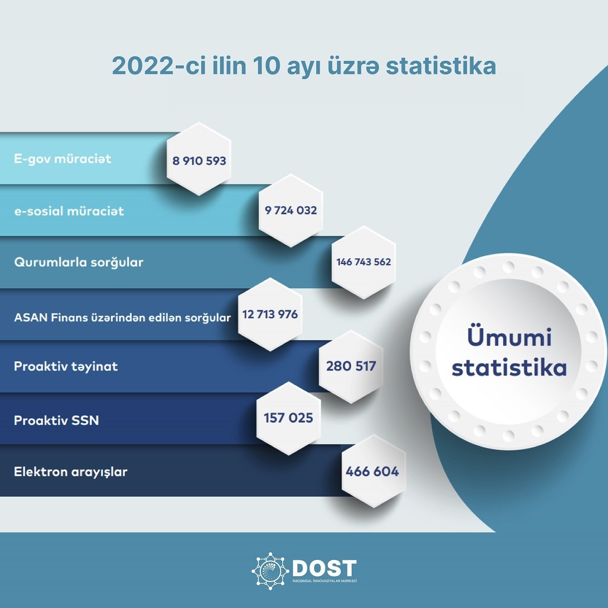 Əmək, məşğulluq, sosial müdafiə sahələrində yeni altsistemlərin, reyestrlərin, informasiya ehtiyatlarının yaradılması istiqamətiində aparılan işlər diqqətə çatdırılıb. Bu il e-gov üzrə müraciət sayının 8,9 milyon, e-sosial.az portalına müraci¬ət sayının 9,7 milyon olduğu, 280,5 min proaktiv təyinat aparıldığı, eləcə də proaktiv qaydada 157 mindən çox sosial sığorta nömrəsinin açıldığı, 466,6 min e-arayış verildiyi bildirilib.