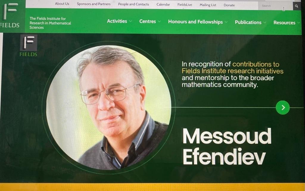 Dünya şöhrətli azərbaycanlı alim, Münhendəki Helmholtz Mərkəzinin professoru, Humboldt mükafatı alan ilk azərbaycanlı alim, Azərbaycanın əməkdar elm xadimi Məsud Əfəndiyev Kanadada fəaliyyət göstərən riyaziyyat elmləri sahəsində araşdırmalar üzrə Fields İnstitutunun ömürlük mükafatına layiq görülüb.