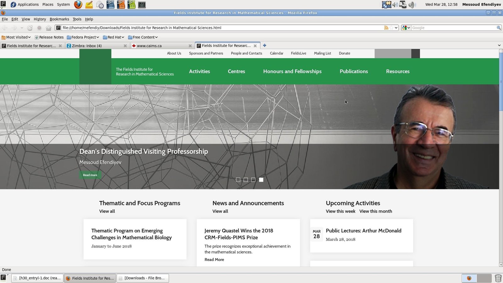 Bu barədə Fields İnstitutunun direktoru Prof. Dr. Kumar Murti adından azərbaycanlı alimə ünvanlanan məktubda məlumat verilib.