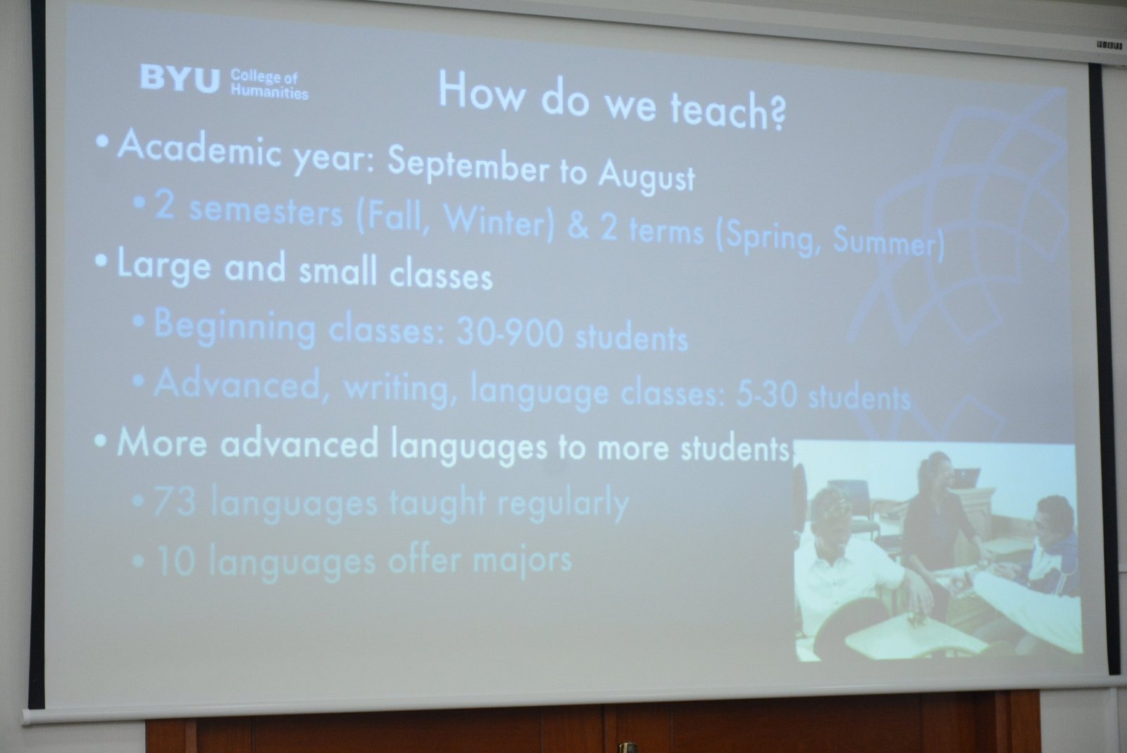 Briqham Yanq Universiteti Humanitar fakültəsinin dekanı, prof. Skot Miller təmsil etdiyi ali təhsil müəssisəsi haqqında geniş məlumat verib. Humanitar kollecin fəaliyyəti barədə danışan dekan bir çox dünya dillərinin burada tədris edildiyini diqqətə çatdırıb.